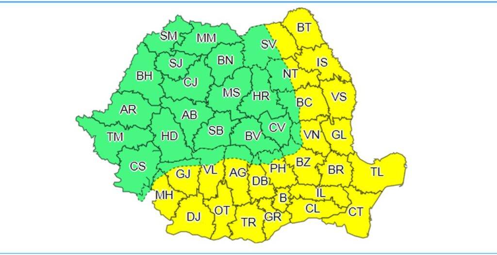 Vreme caniculară, în continuare, în România. Administrația Națională de Meteorologie (ANM) a emis o atenționare Cod galben de caniculă și disconfort termic în 24 de județe. Zonele vor fi afectate total sau parțial, inclusiv în Capitală. Avertizare dată de meteorologi este valabilă în cursul zilei de astăzi, dar și mâine.