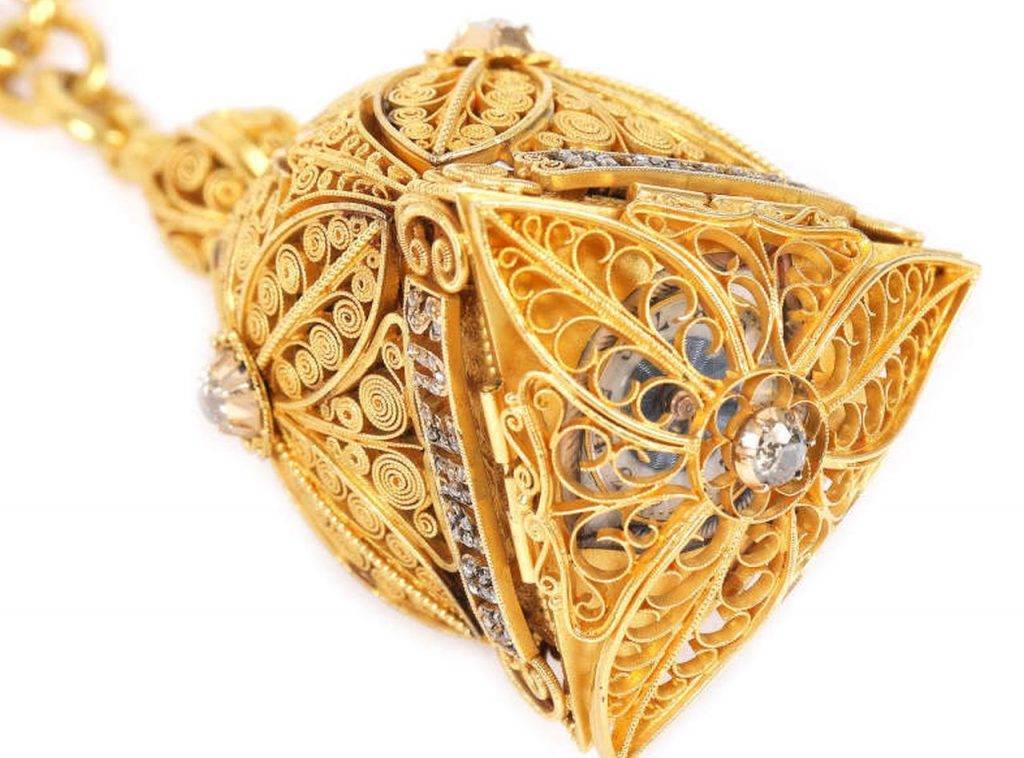 Ceasul pentru Regina Elisabeta a României, are forma drept „Ochiul lui Dumnezeu”, este din aur filigranat, decorat cu diamante și miniaturi din email, a fost realizat în 1885 de către celebrul bijutier german Franz Carl Telge. Acesta era cel mai mare furnizor al familiei regale. Piesa muzeală, care se deschide asemenea unui flori, lasă la vedere trei panouri din email pictat cu Orfeu, David și Nimfă, reprezintă o bijuterie unică și are un preț de pornire de 25.000 de euro.