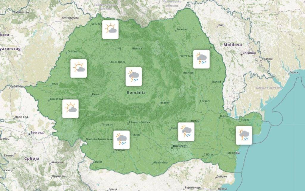 - Miercurea Ciuc: 22 grade Celsius, Precipitații: 50%, Umiditate: 60%, Vânt: 16 km/h