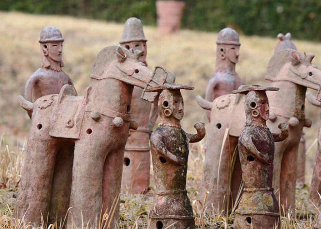 Poporul Kofun se apropie cel mai mult de structura genetică a poporului Han, care cuprinde cea mai mare parte a populației chineze. În perioada Kofun, au început să fie folosite caracterele chinezești, care erau gravate pe obiecte metalice, cum ar fi săbiile. Prin Peninsula Coreeană, au fost importate lucruri care țin de cultura și tehnologia Chinei.