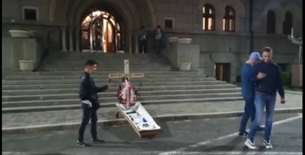 Protest în fața Primăriei Sectorului 1! Tinerii au venit cu sicriu, cruce și colivă