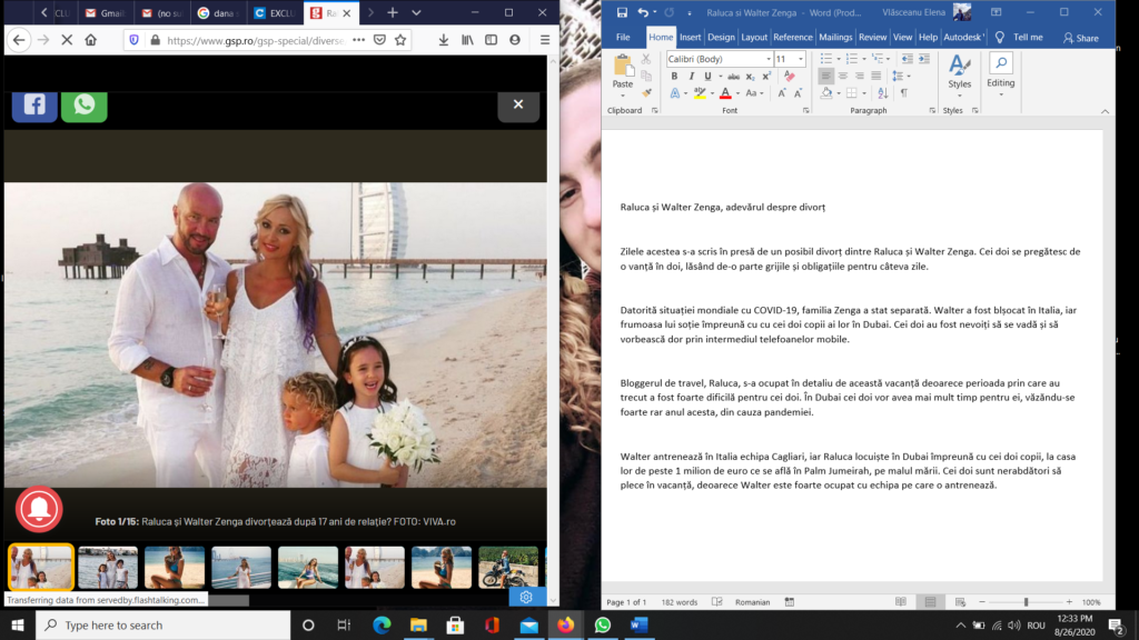 Zilele acestea s-a scris în presă de un posibil divorț dintre Raluca și Walter Zenga. Cei doi se pregătesc de o vacanță în doi, lăsând de-o parte grijile și obligațiile pentru câteva zile.