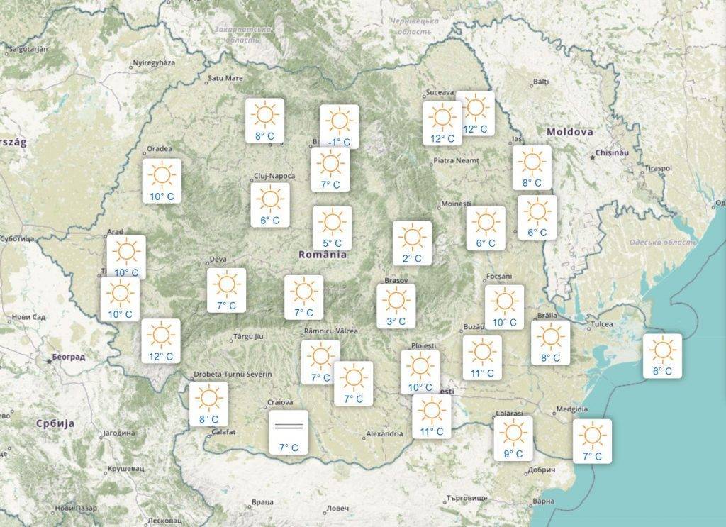 De partea cealaltă, în județele aflate în jumătatea nordică a Moldovei și în Bucovina, meteorologii de la ANM anunță o vreme frumoasă și temperaturi plăcute spre mijlocul zilei. Maximele termice ajung din nou la 18-19 grade Celsius, cu peste 10 grade peste valorile raportate ieri, o schimbare așadar destul de majoră.